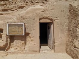 Die Fahrt (mit einem Taxi) verläuft zunächst endlos lange durch eine Steinwüste, über einen nicht befestigten Weg. Dann erreicht man einen kleinen Tempel, der angeblich der Göttin Nechbet gewidmet ist. Im Inneren sieht man allerdings Abbildungen der allgegenwärtigen Göttin Hathor.